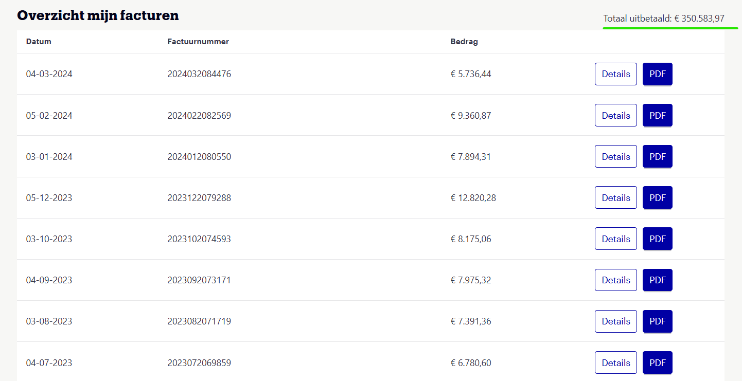 Je ziet precies hoe ik de afgelopen jaren steeds voor 5 minuten werk honderden euro's factureerde.