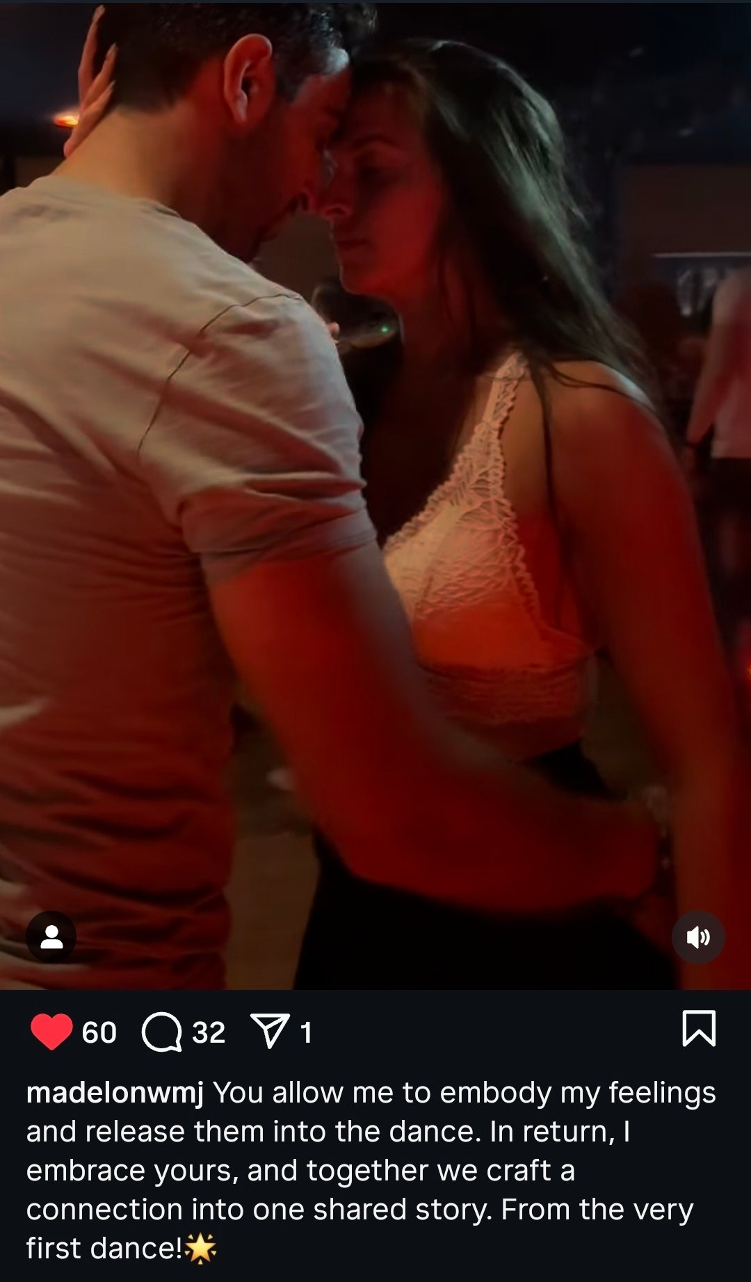 How you don’t just dance the steps, but truly connect - with me, with the music. Pure, creative, and full of expression. A wonderful leader.